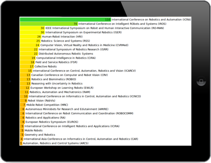 Microsoft Academic's field ratings for conferences. Microsoft Academic describes field ratings as follows: "The field rating is similar to h-index in that it calculates the number of publications by an author and the distribution of citations to the publications. Field rating only calculates publications and citations within a specific field and shows the impact of the scholar or journal within that specific field"